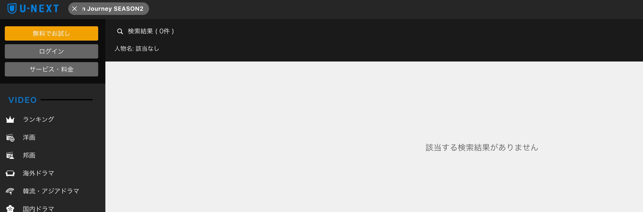 検索した結果、【あいのり:Asian Journey SEASON2】はU-NEXTで配信されていませんでした。