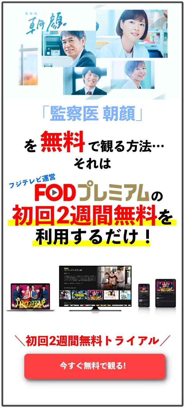 ↓すぐに「監察医 朝顔」を視聴することができます↓