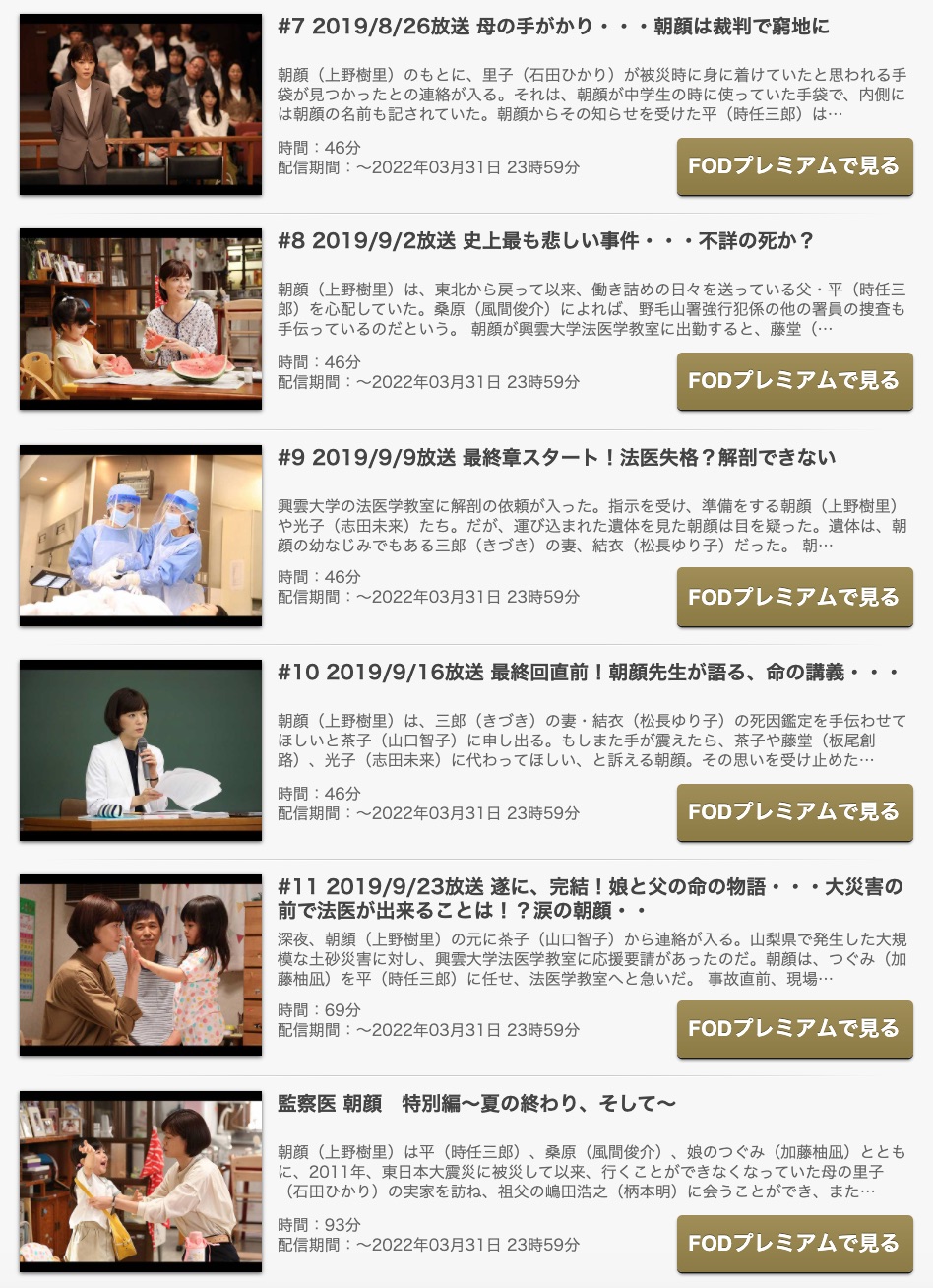 ドラマ「監察医 朝顔」を配信している動画配信サイトを調べたところ、