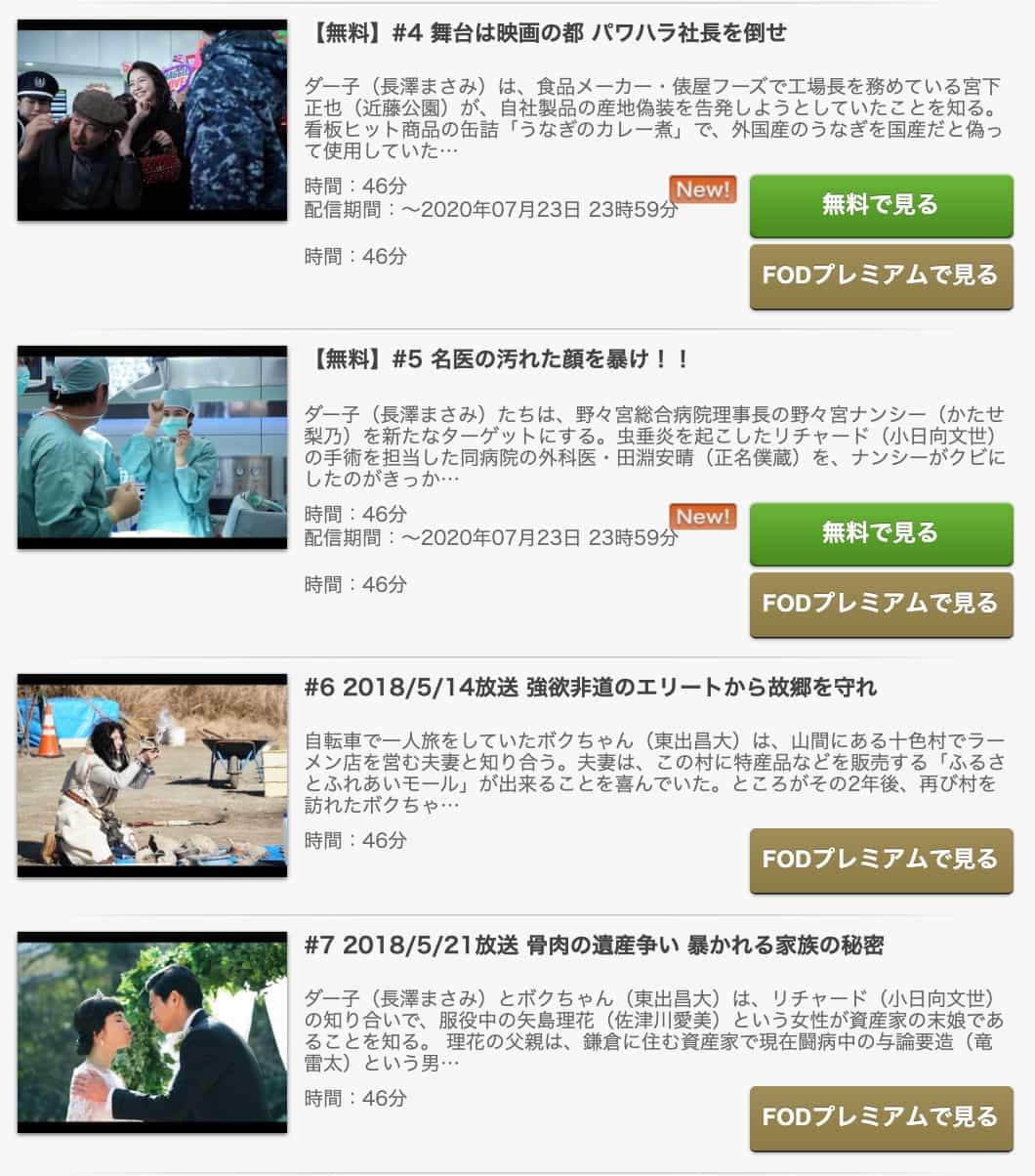 現在配信されているのはFODプレミアムのみとなっています。
