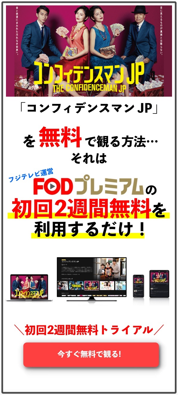 ↓すぐに「コンフィデンスマン JP」を視聴することができます↓