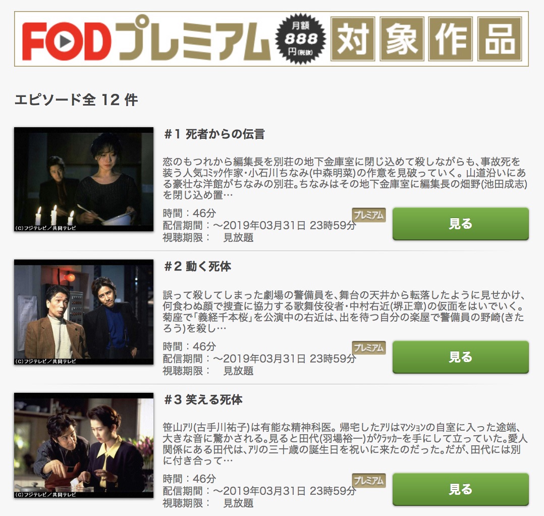 そして、『古畑任三郎』はFODプレミアムの対象作品なので見放題の対象です。