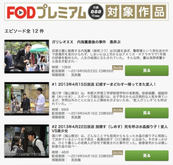 そして、『ガリレオ』はFODプレミアムの対象作品なので見放題の対象です!