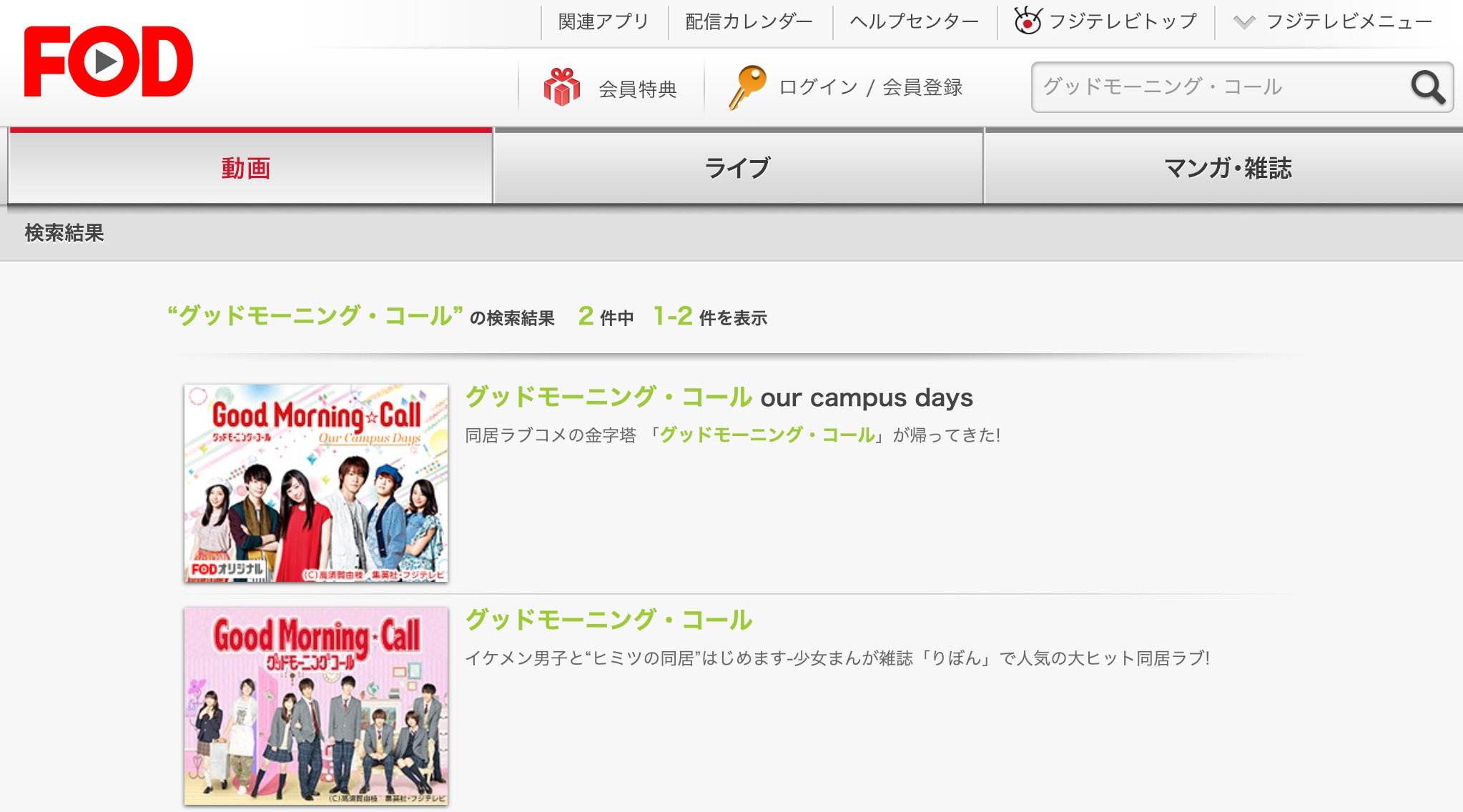 検索した結果は、【グッドモーニングコール】はFODプレミアムで配信されており無料視聴可能です!