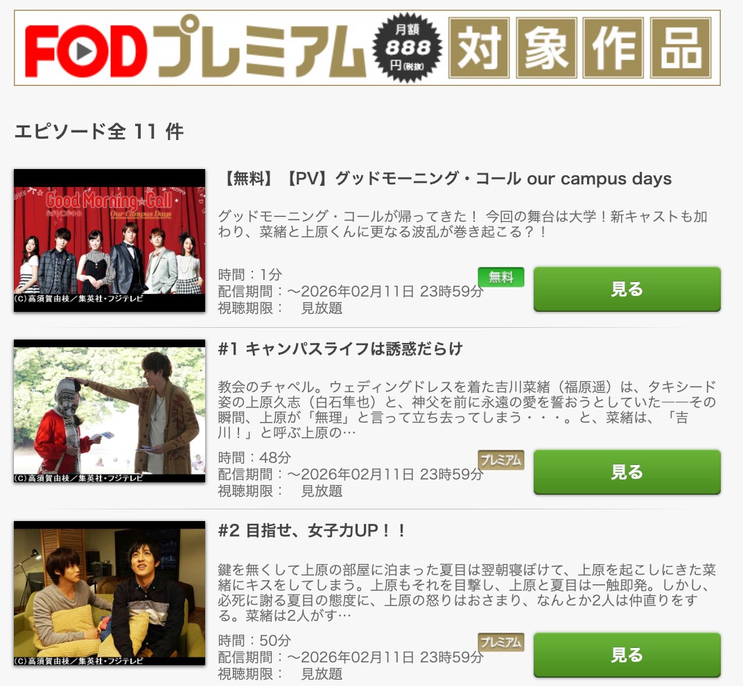 【グッドモーニングコール】の動画は、FODプレミアムで配信されています。