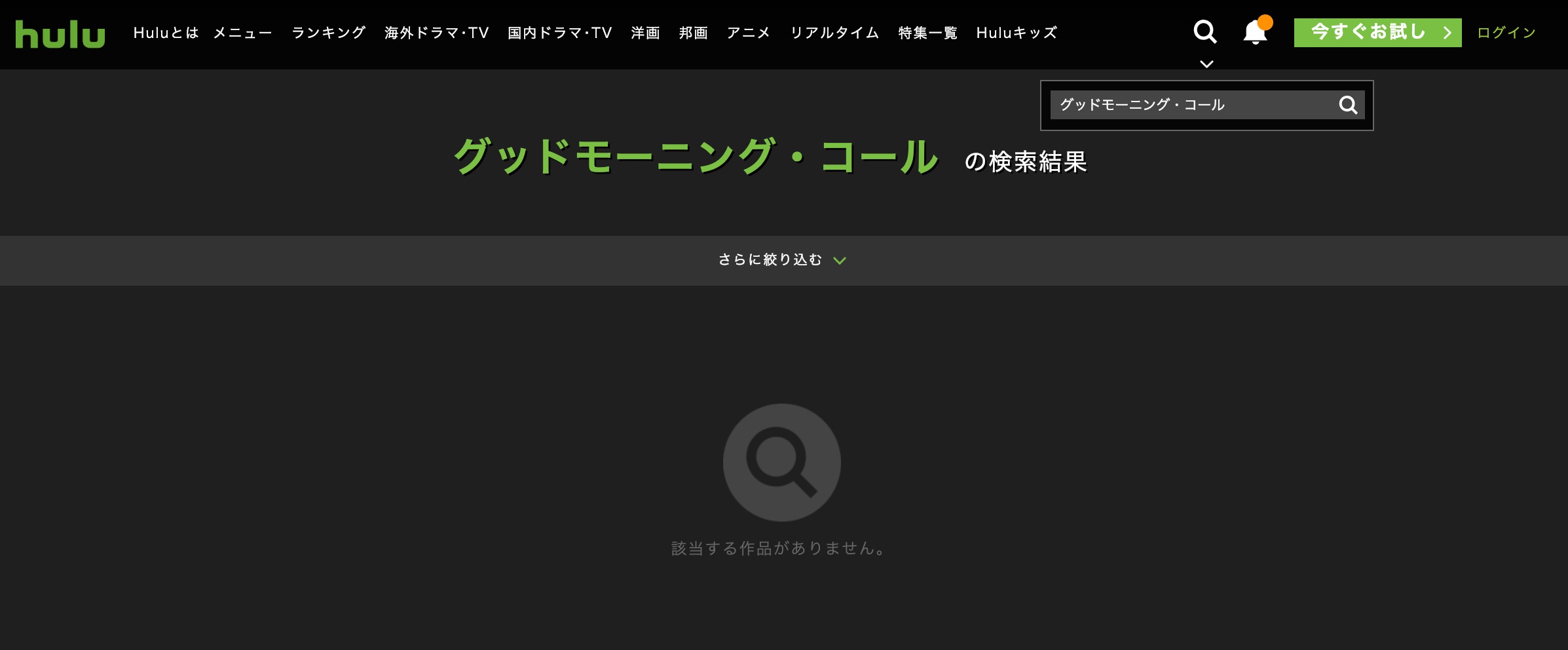 検索した結果、【グッドモーニングコール】はHuluでは配信されていませんでした。