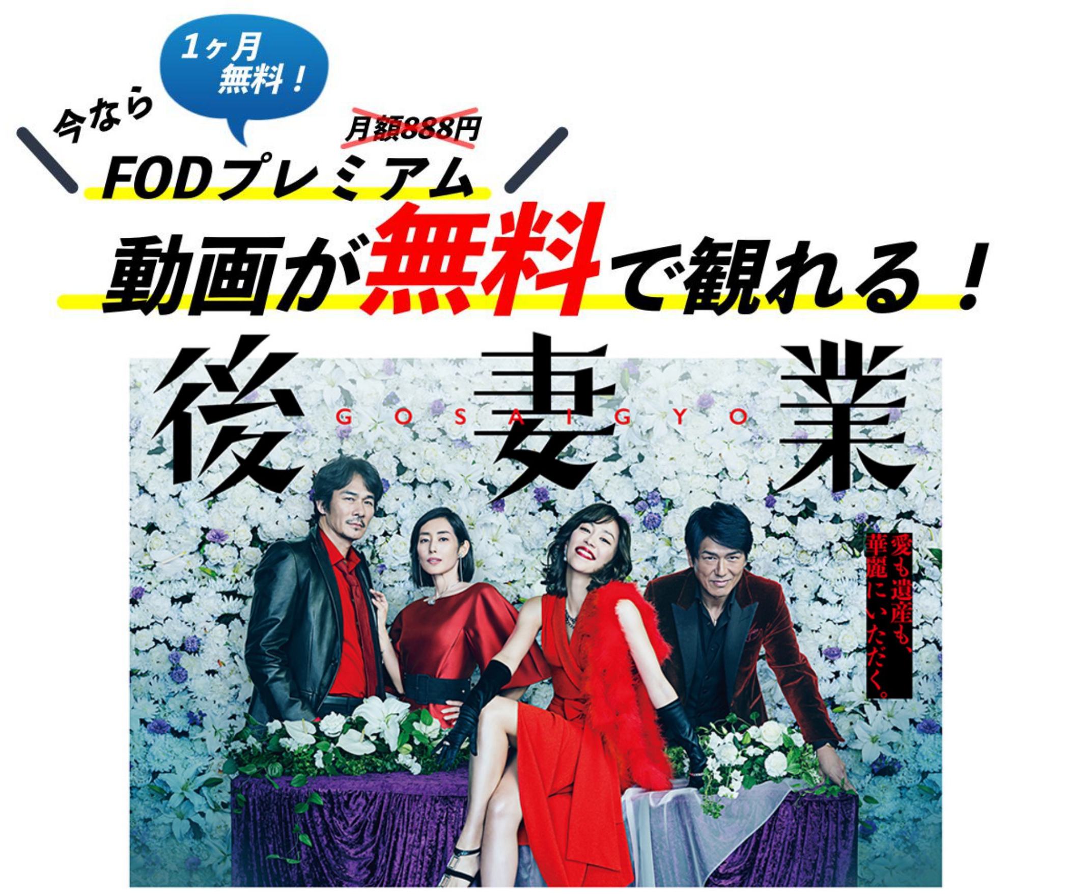 FODプレミアムに無料で登録するだけで、ドラマ【後妻業】が無料で視聴可能になるんです!