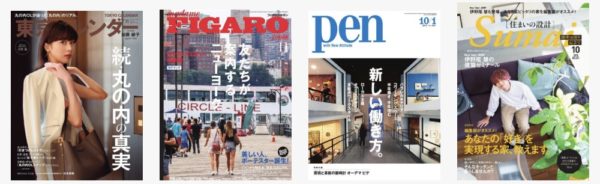・Tarzan(ターザン) ・サライ ・ESSE ・ELLE DECOR ・Pen ・Lightning ・LDK ・Mart ・男の隠れ家 ・東京カレンダー ・フィガロジャポン ・Begin ・Discover Japan ・住まいの設計 ・WIRED ・オズマガジンプラス[/su_spoiler]