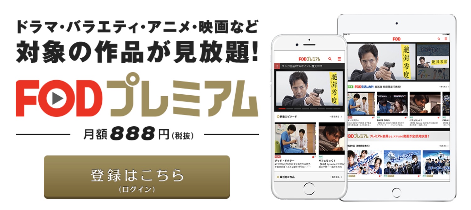FODプレミアムは、フジテレビが運営する定額見放題の動画配信サービスです。