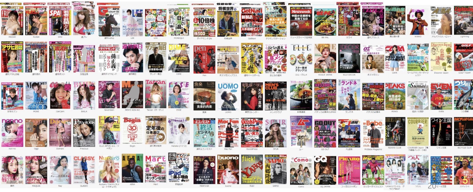 ファッション・ビジネス・スポーツなど100誌を超えるラインナップです。