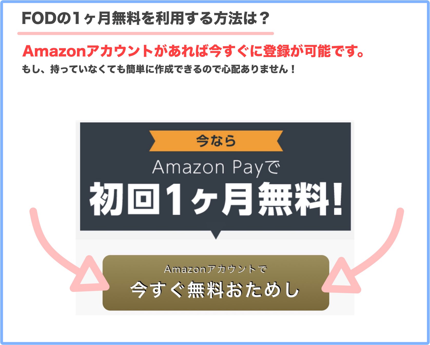 「Amazonアカウント」を利用して、FODプレミアムに初めて登録すると、見放題対象作品を2週間無料で楽しめます。
