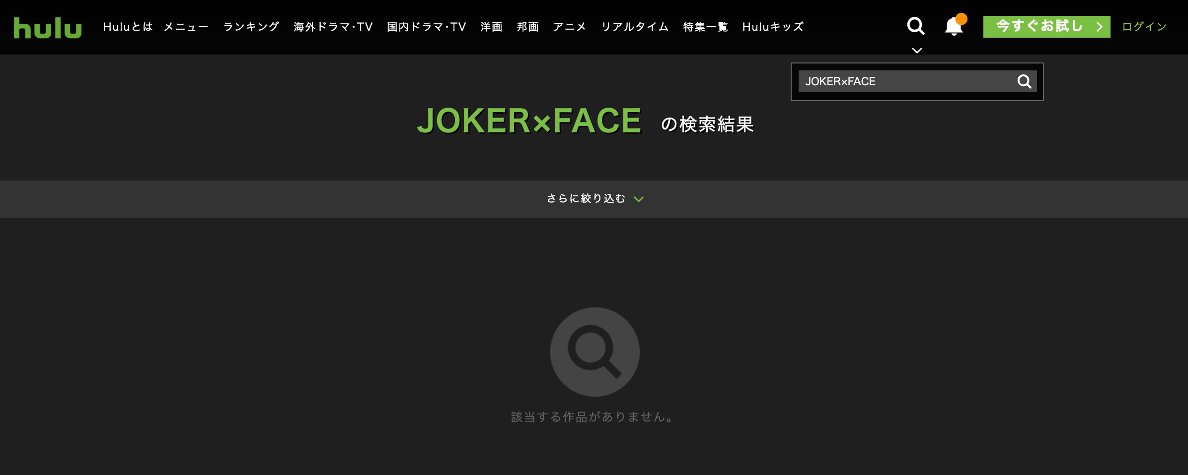 検索した結果、【JOKER×FACE】はHuluでは配信されていませんでした。