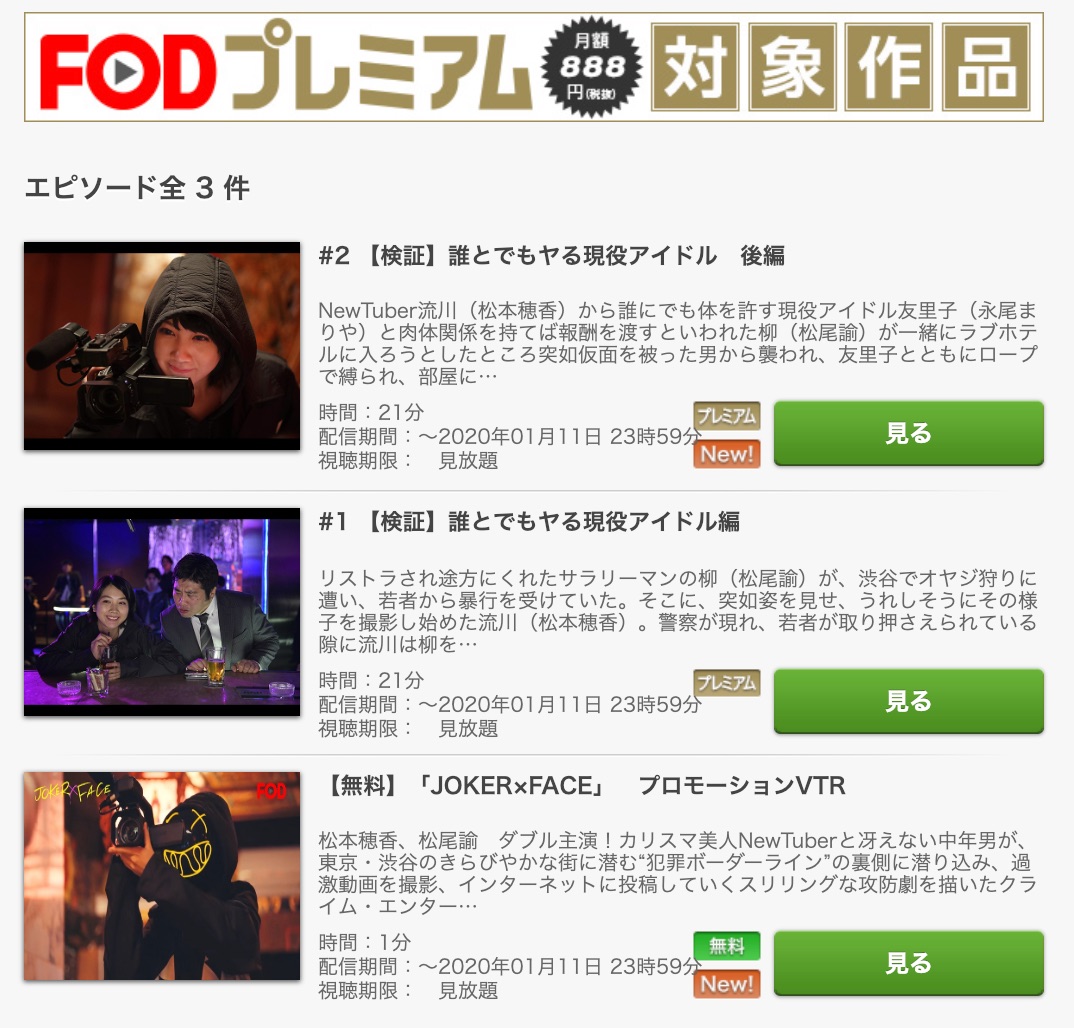 【JOKER×FACE】の動画は、FODプレミアムで配信されています。