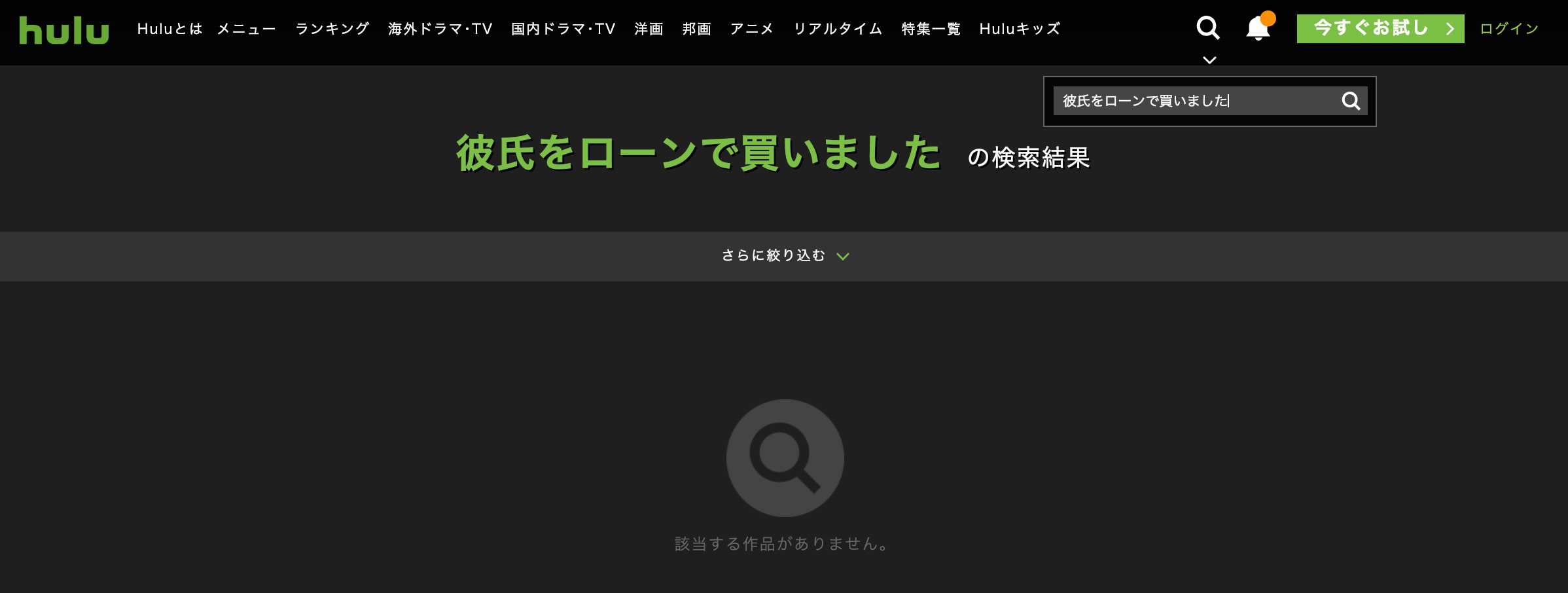 Huluで、【彼氏をローンで買いました】は配信されているのか検索窓に「彼氏をローンで買いました」と入力し検索しました。