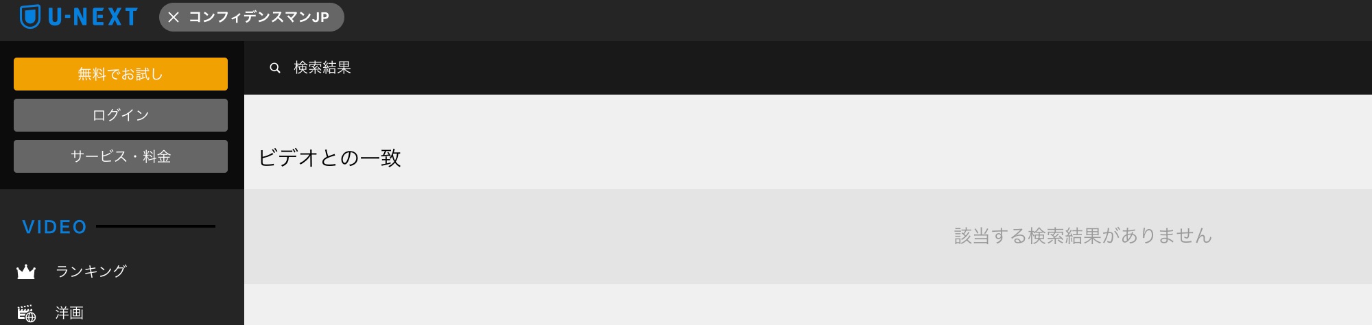 検索した結果、【コンフィデンスマンJP】はU-NEXTで配信されていませんでした。