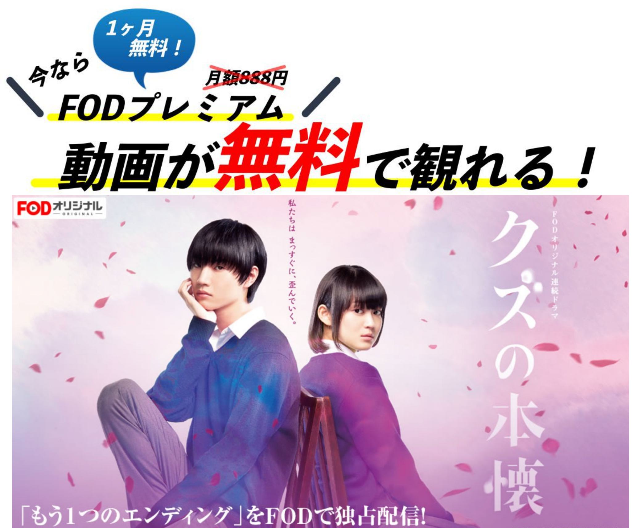 FODプレミアムに無料で登録するだけで、【クズの本懐】が今すぐ無料でイッキ見可能に!