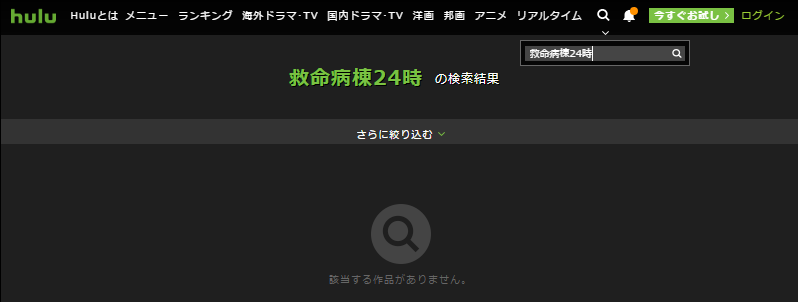 検索した結果、【救命病棟24時】はHuluで配信されていませんでした。