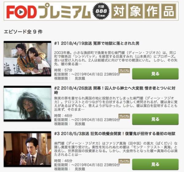 そして、『モンテ・クリスト伯』はFODプレミアムの対象作品なので見放題の対象です!