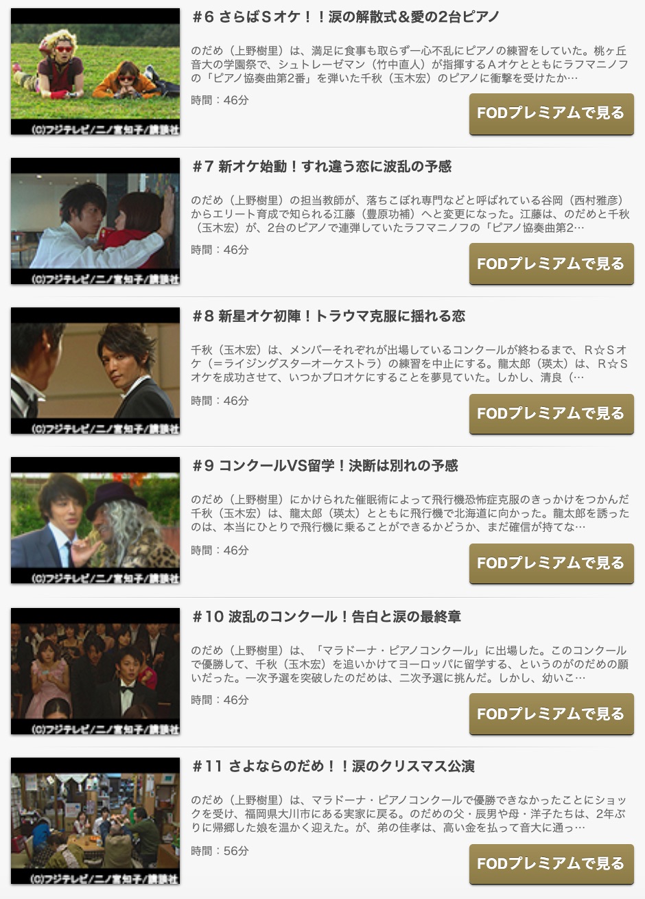 ドラマ「のだめカンタービレ」を配信している動画配信サイトを調べたところ、