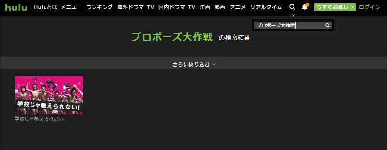 Huluで、【プロポーズ大作戦】は配信されているのか検索窓に「プロポーズ大作戦」と入力し検索しました。