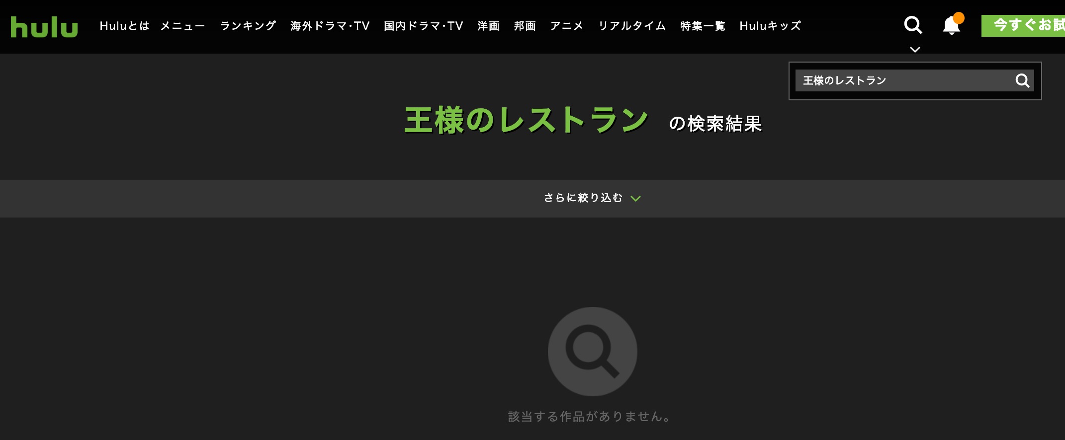 検索した結果、【王様のレストラン】はHuluで配信されていませんでした。