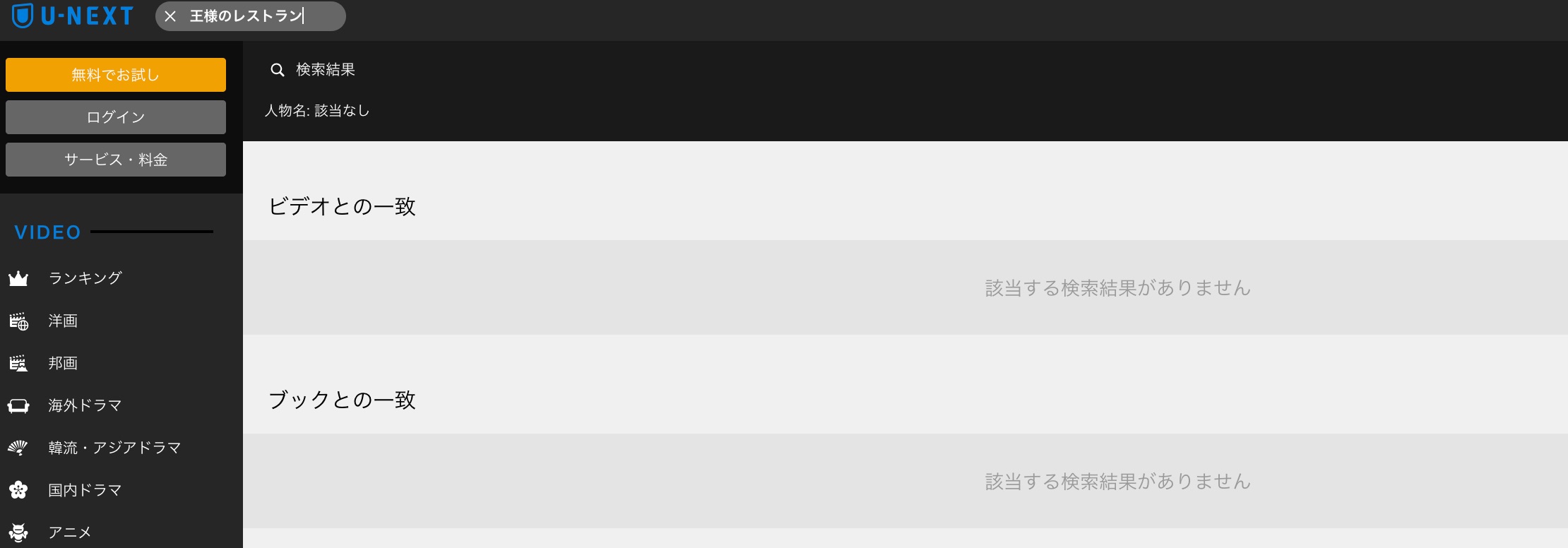 検索した結果、【王様のレストラン】はU-NEXTで配信されていませんでした。