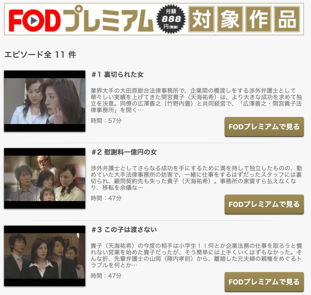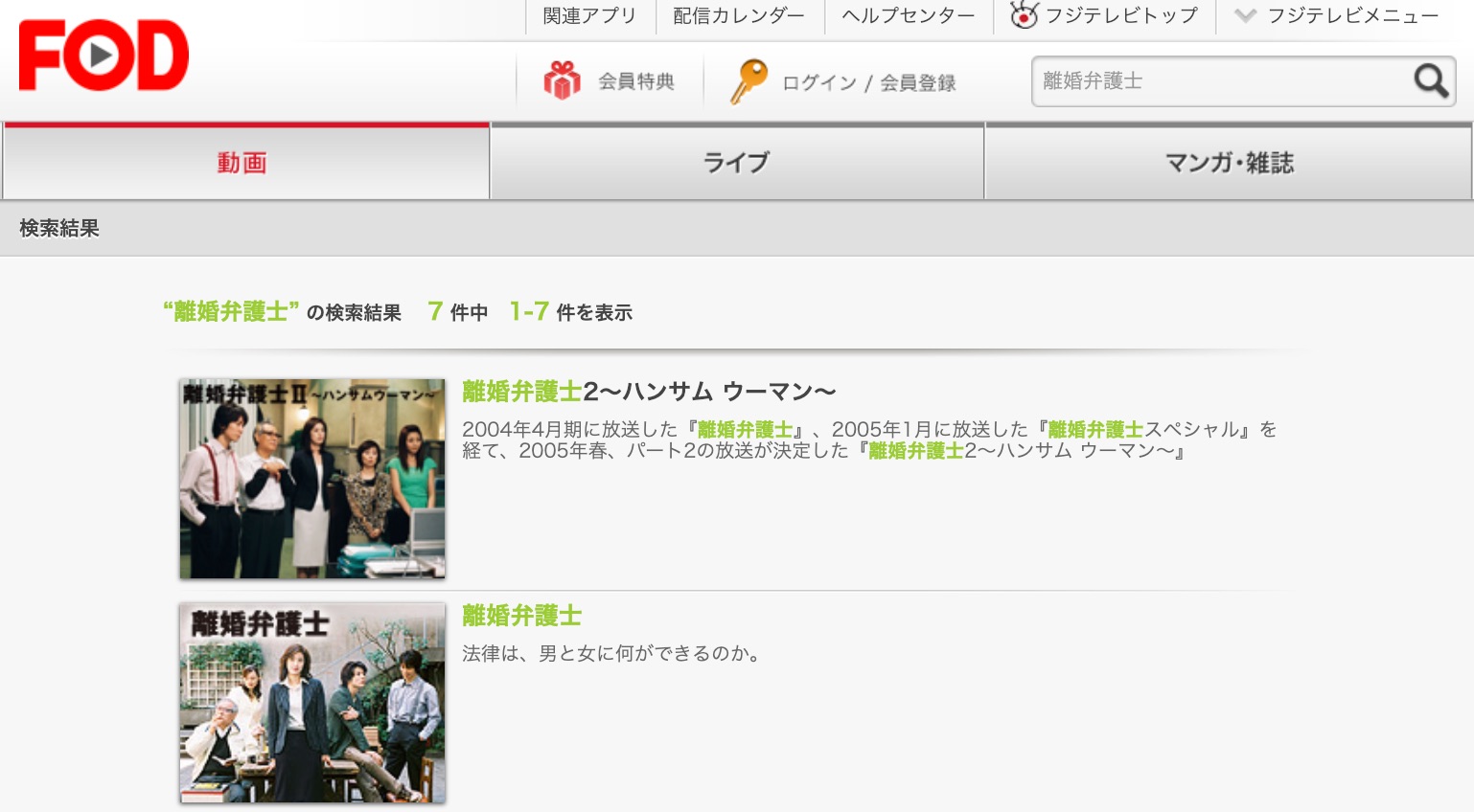 検索した結果は、【離婚弁護士】はFODプレミアムで全話配信されており無料視聴可能です!