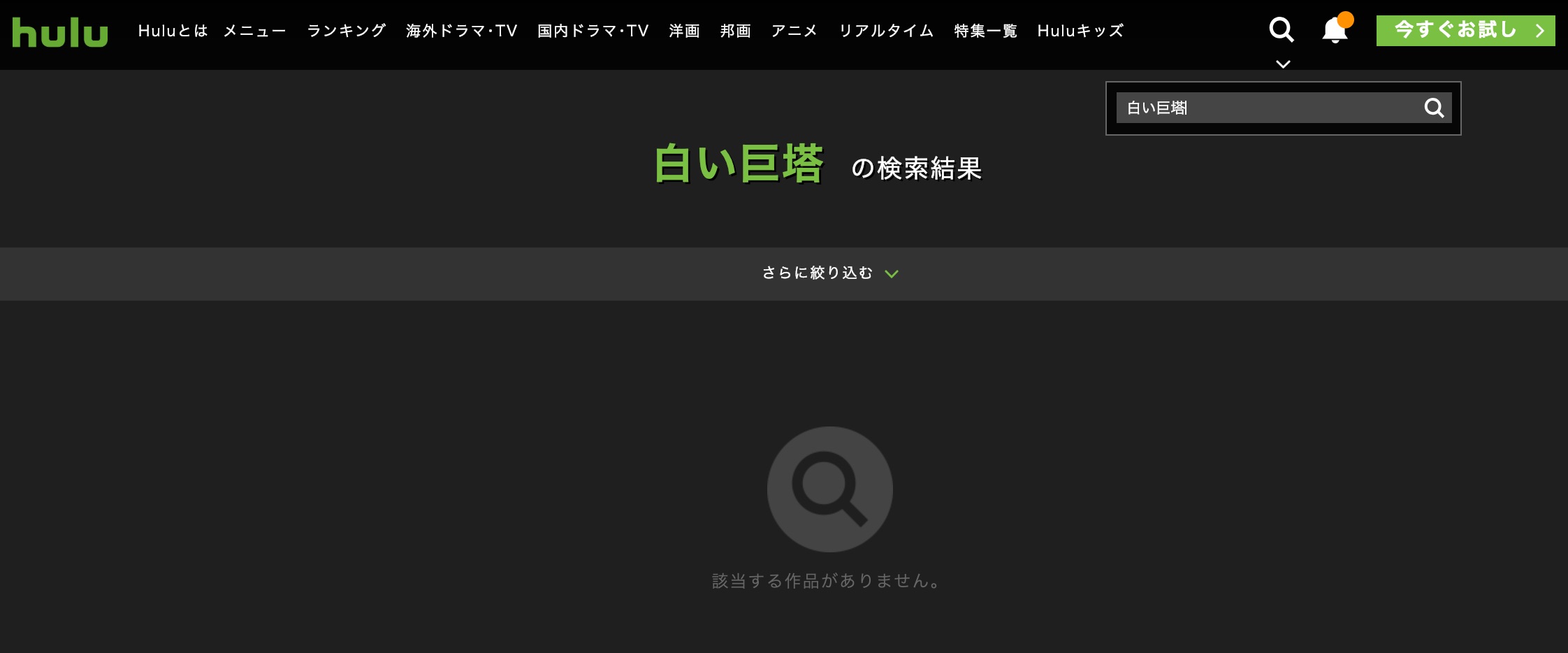 検索した結果、【白い巨塔】はHuluで配信されていませんでした。