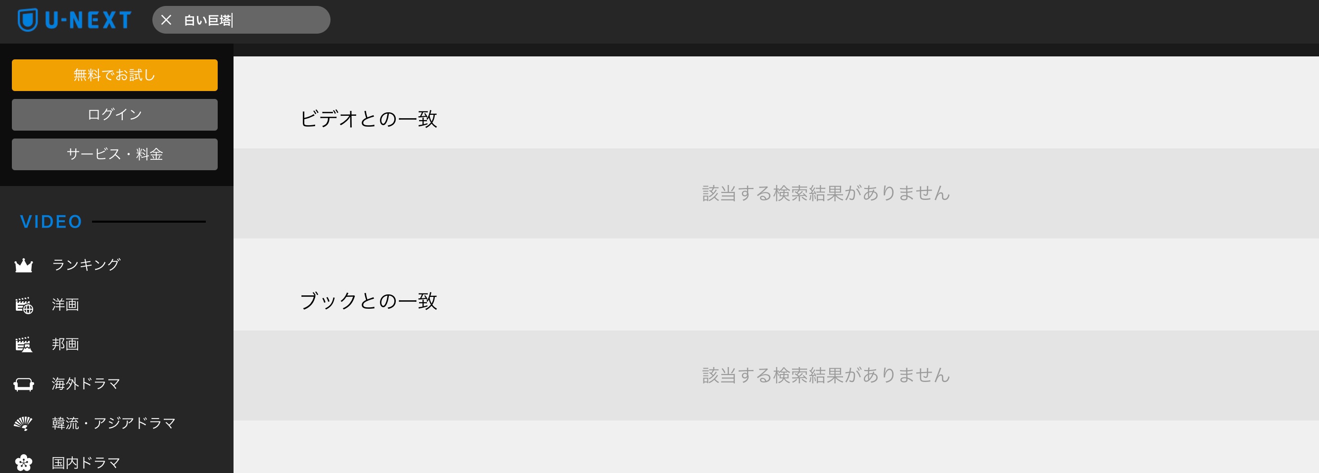 検索した結果、【白い巨塔】はU-NEXTで配信されていませんでした。