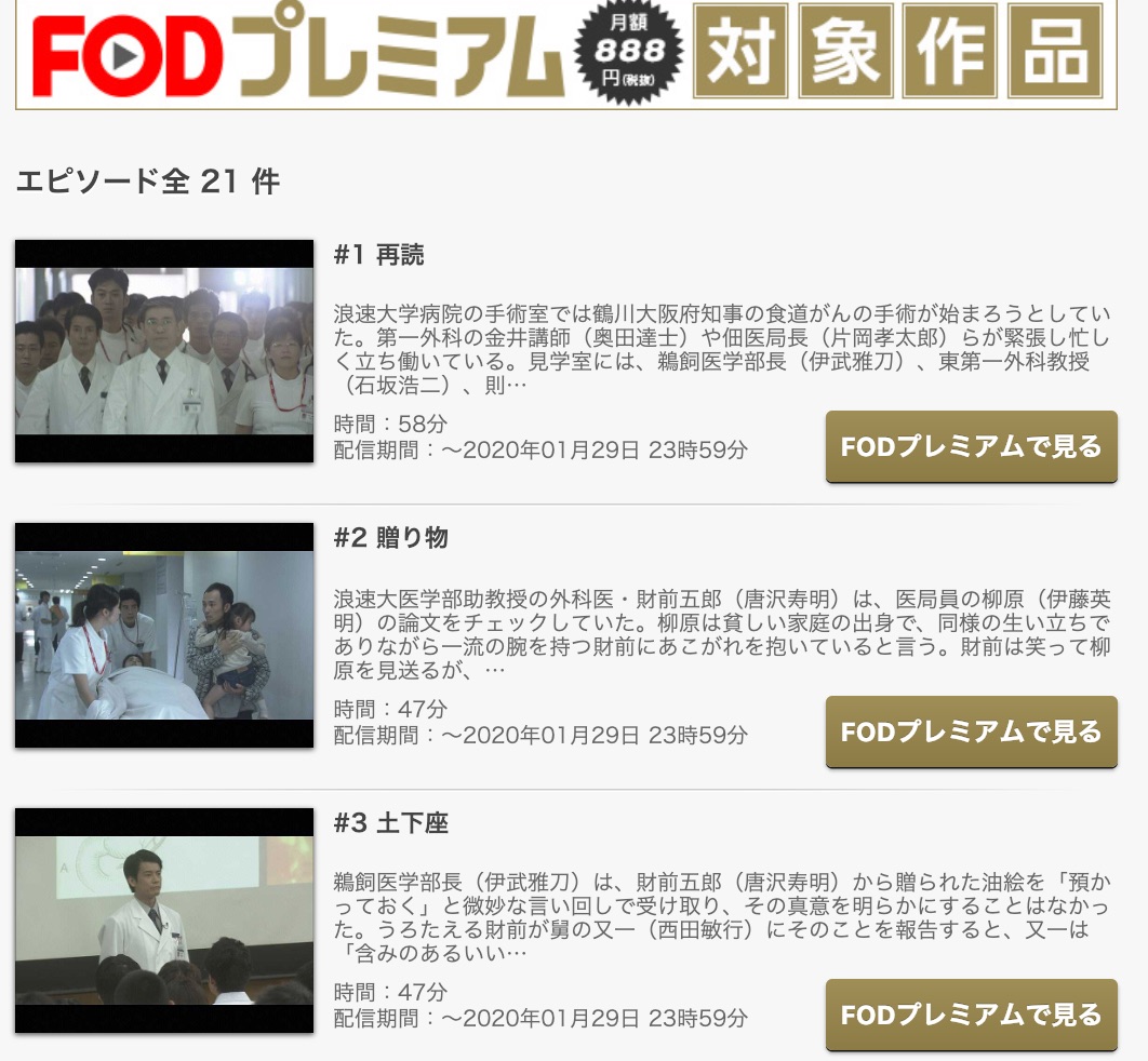そして、【白い巨塔】はFODプレミアムの対象作品なので見放題の対象です。