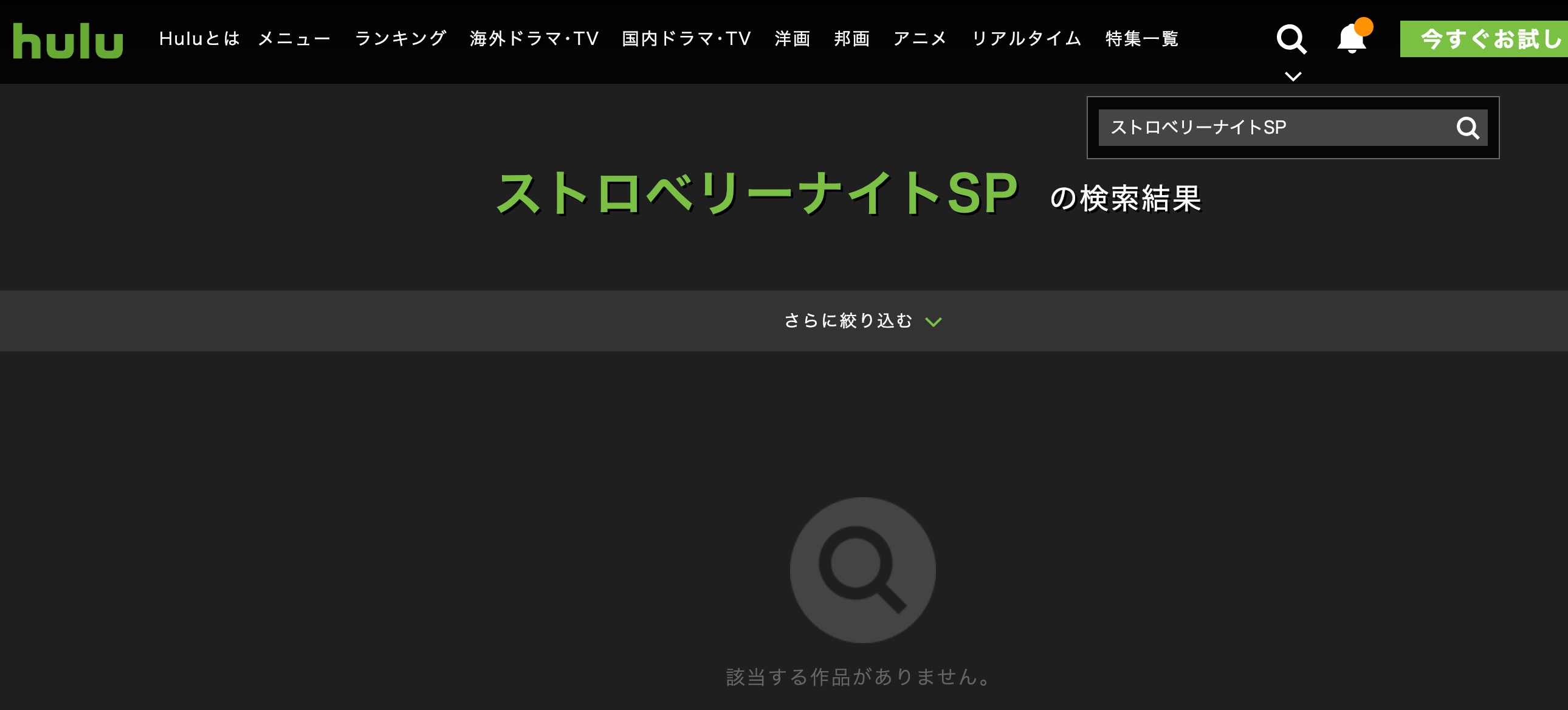 Huluで、【ストロベリーナイトSP】は配信されているのか検索窓に「ストロベリーナイトSP」と入力し検索しました。