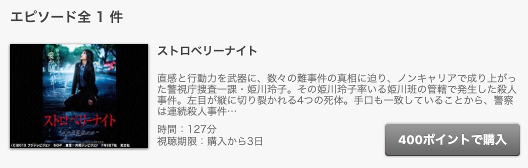 さらに無料期間中にもらえる最大1,300ポイントを利用すれば映画ストロベリーナイトも無料視聴が可能になります!