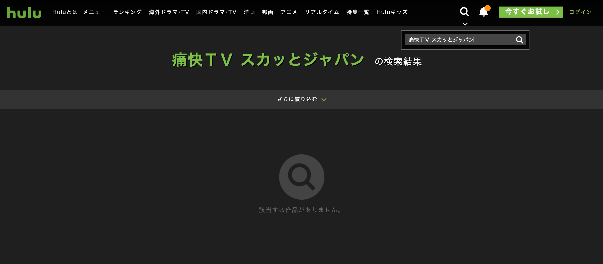 検索した結果、【痛快TV スカッとジャパン】はHuluで配信されていませんでした。