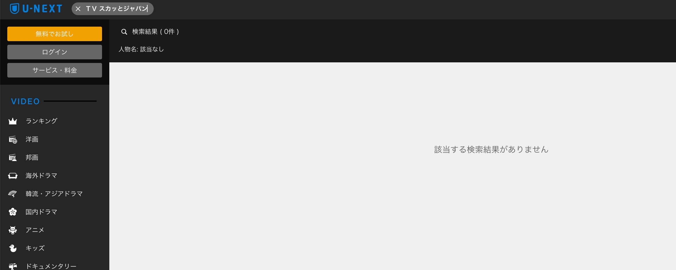 U-NEXTで、【痛快TV スカッとジャパン】は配信されているのか検索窓に「痛快TV スカッとジャパン」と入力し検索しました。