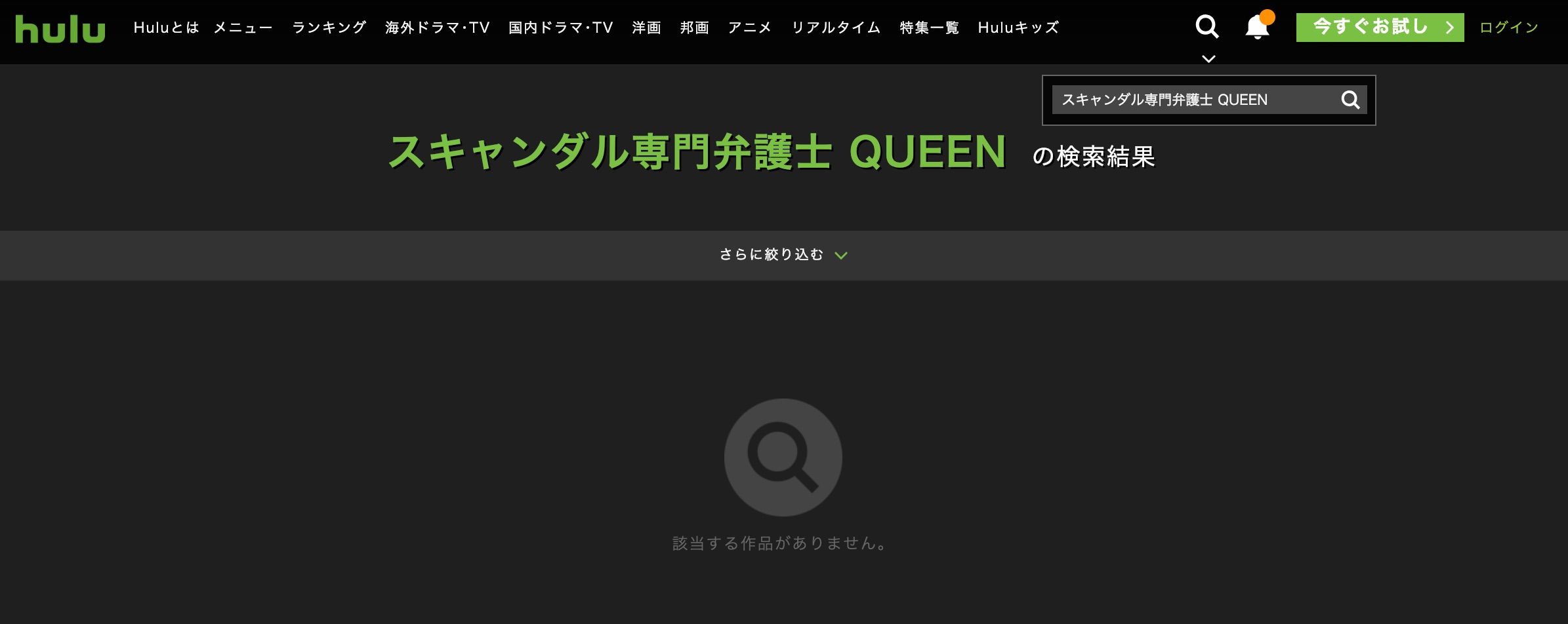 Huluで配信されているのか検索窓に「スキャンダル弁護士 QUEEN」と入力し検索しました。