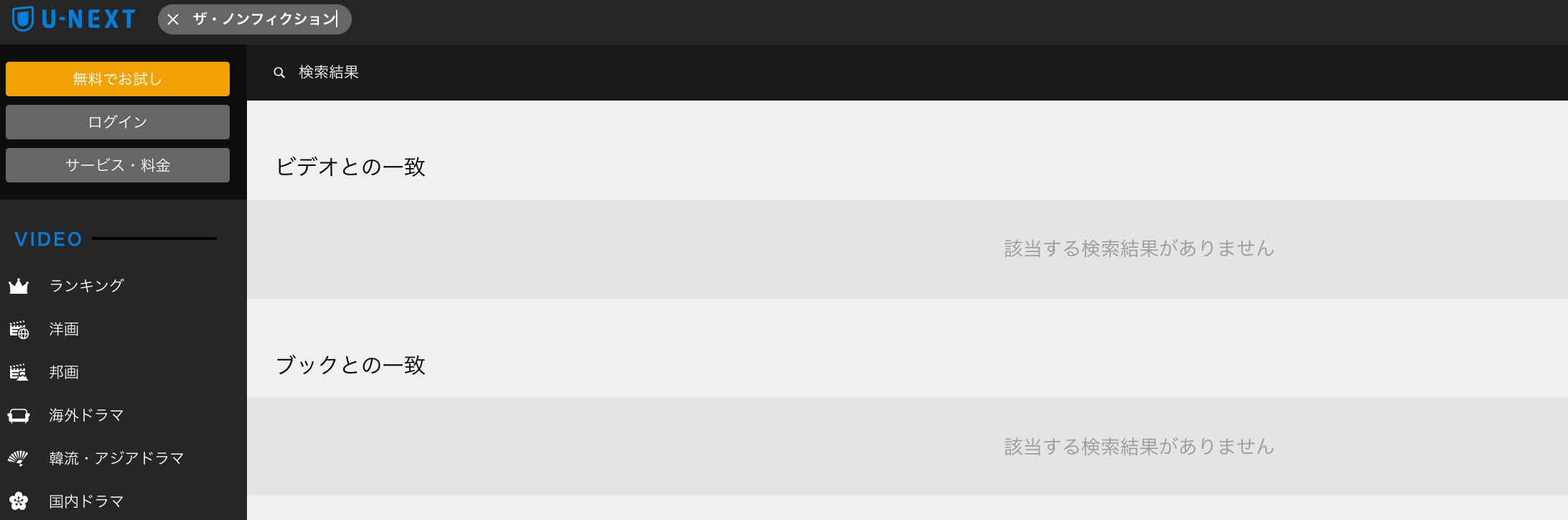 検索した結果、【ザ・ノンフィクション】はU-NEXTで配信されていませんでした。