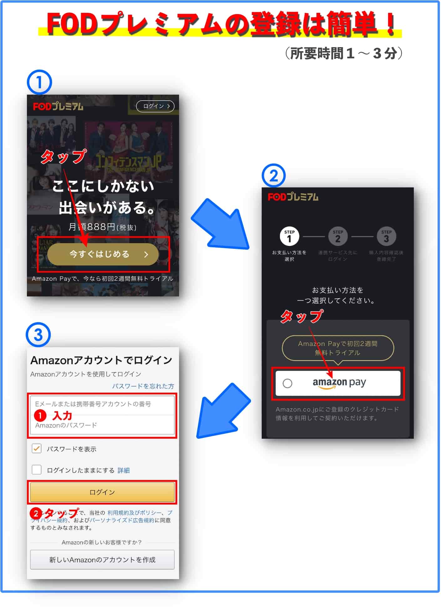 FODプレミアムの無料登録は、「Amazonアカウント」でログインするだけでOK!