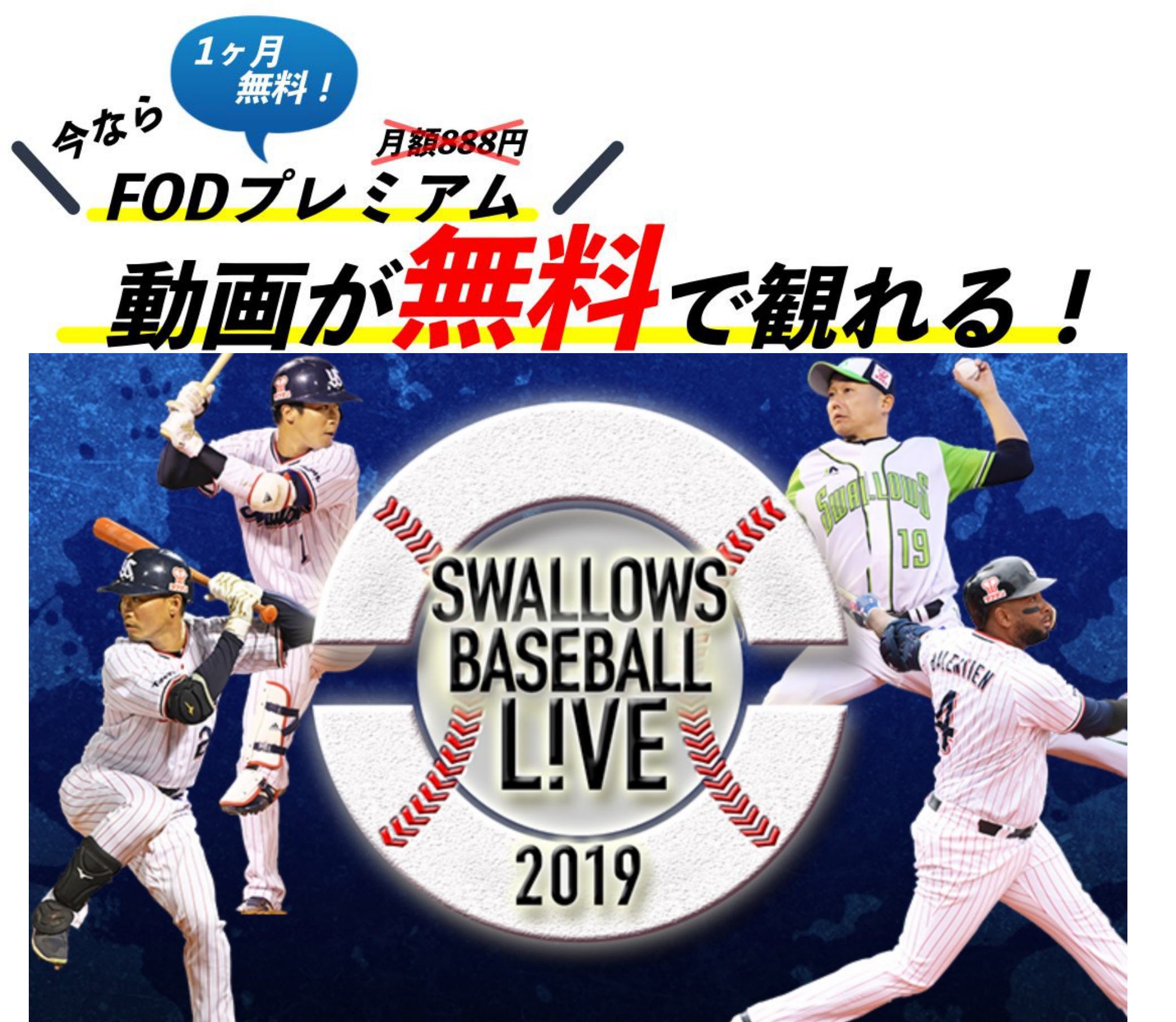FODプレミアムに無料登録するだけで、【ヤクルトスワローズ】のLive生配信が今すぐ無料で観ることができます!