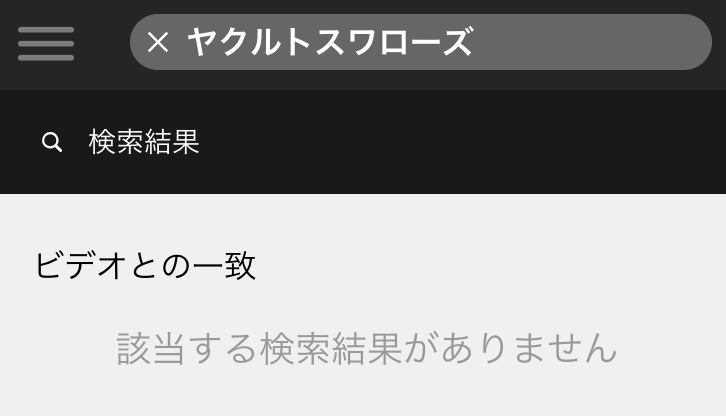 huluで、【ヤクルトスワローズ】のLive生配信はされているのか検索窓に「ヤクルトスワローズ」と入力し検索しました。